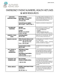 Emergency Phone Numbers, Hotlines & Web Resources Posted on October 17, 2018 by Elmwood Pediatric Group