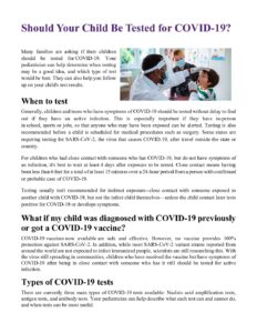 SHOULD YOUR CHILD BE TESTED FOR COVID-19